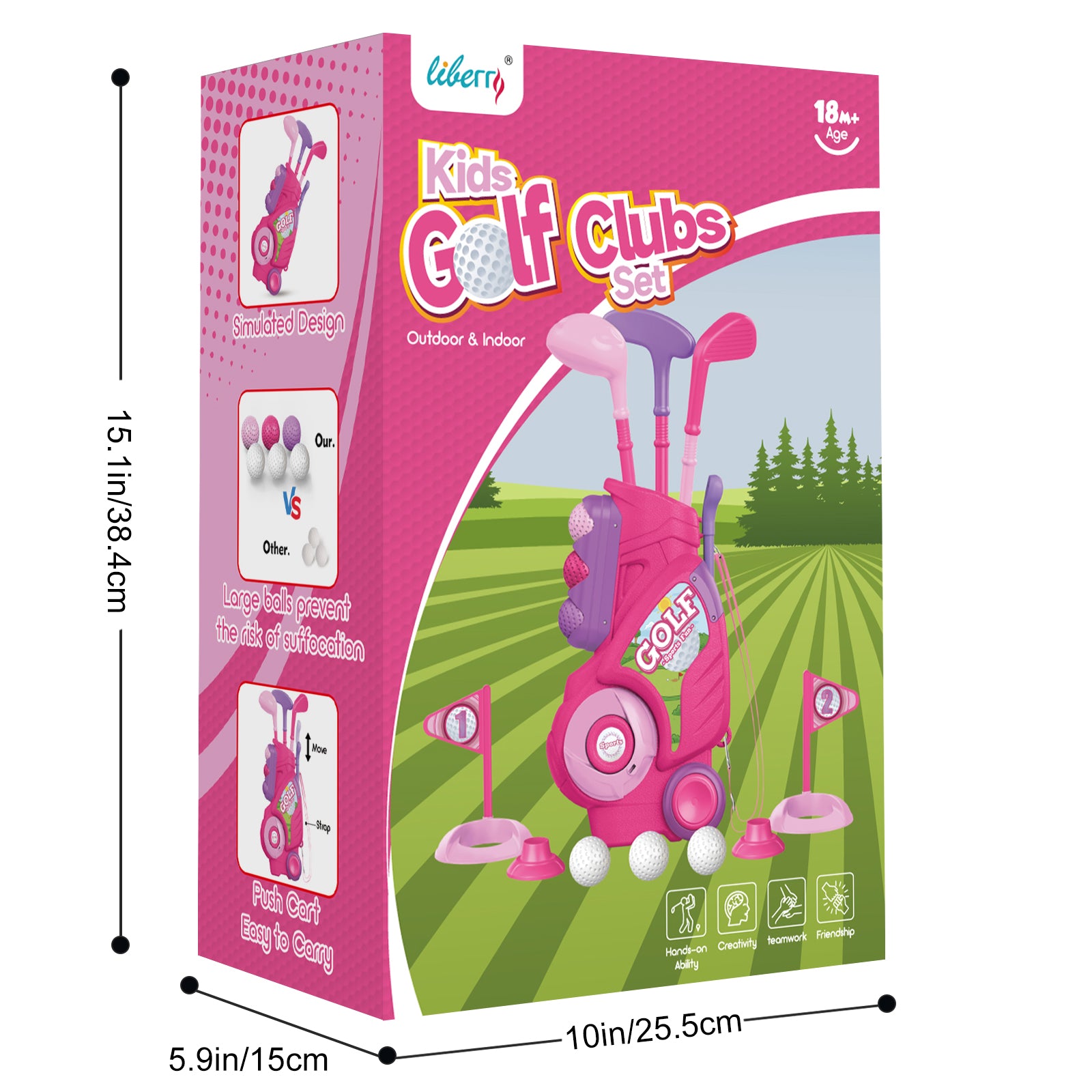 Liberry Toddler Golf Set for 1 2 3 4 Years Old, Upgraded Kids Golf Cart with Unique Shoulder Strap Design, Indoor and Outdoor Golf Toys for Boys Girls (Pink)